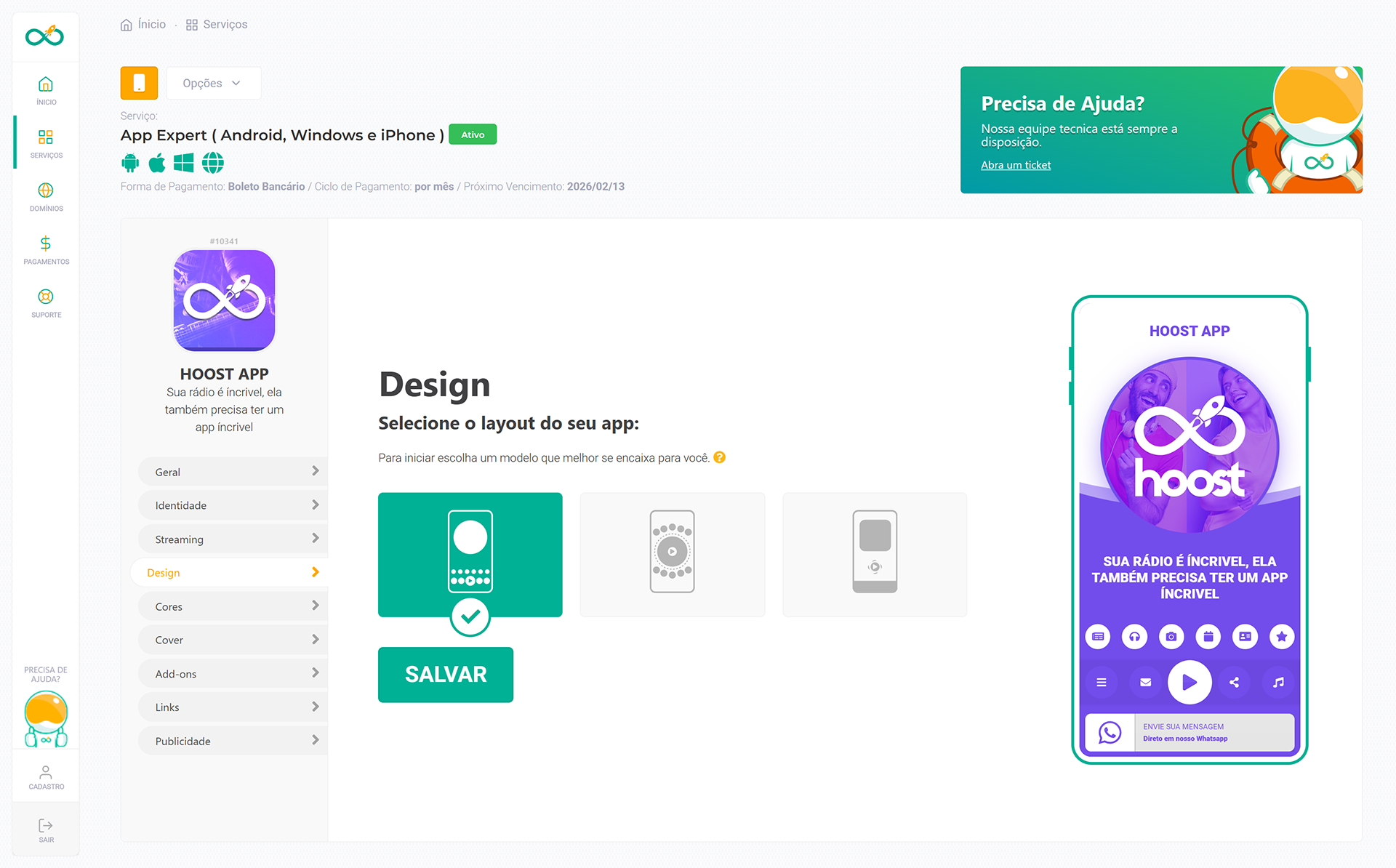 Após escolher o modelo desejado, clique em SALVAR para aplicar a alteração.
