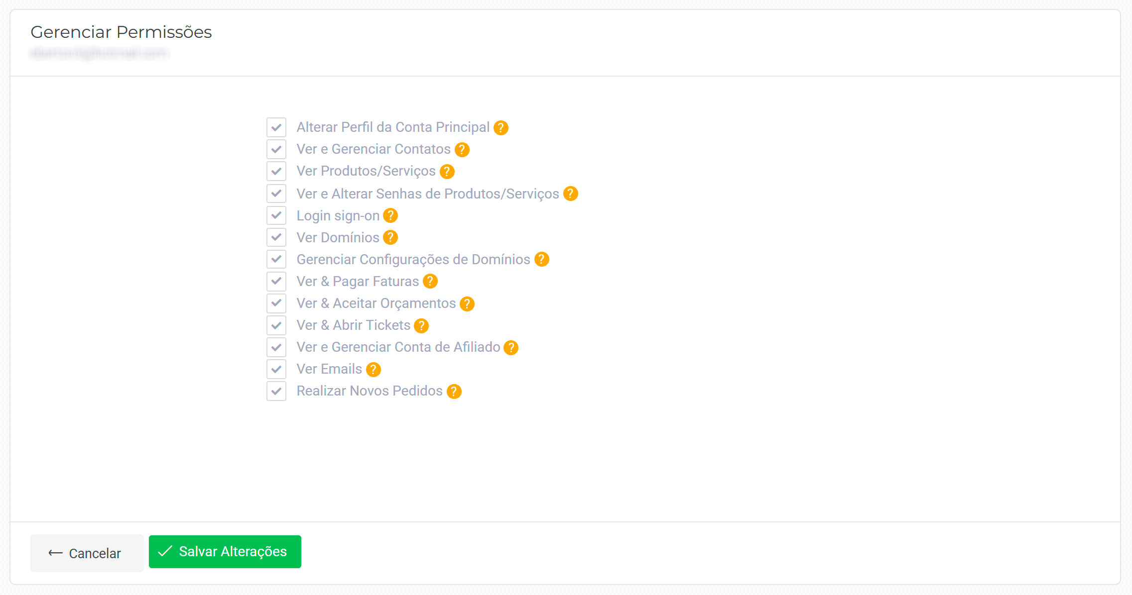 Marque apenas os acessos que o usuário deverá possuir e, em seguida, clique em “Salvar Alterações” para concluir.