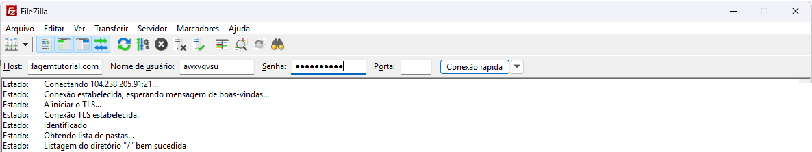Abra o FileZilla e preencha os campos na parte superior da tela: