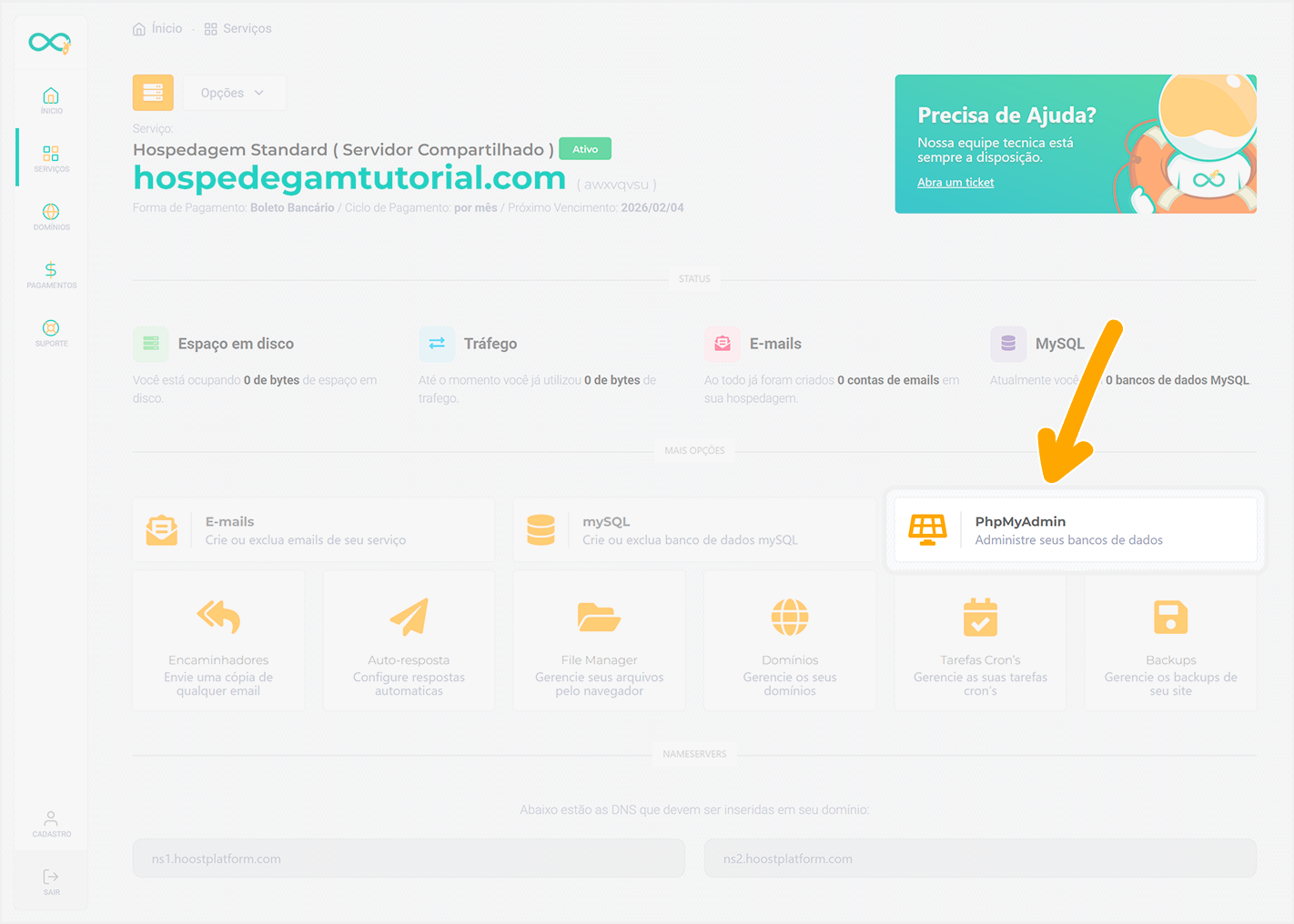 Se tiver dúvidas sobre o uso do phpMyAdmin, nossa equipe de suporte está pronta para ajudar.
