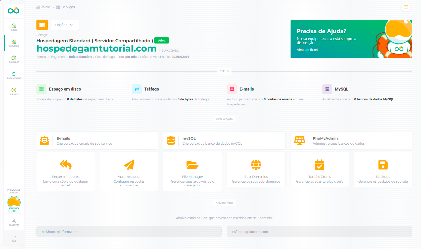 A Área do Cliente da Hoost é o local onde você pode gerenciar informações do seu serviço, como: