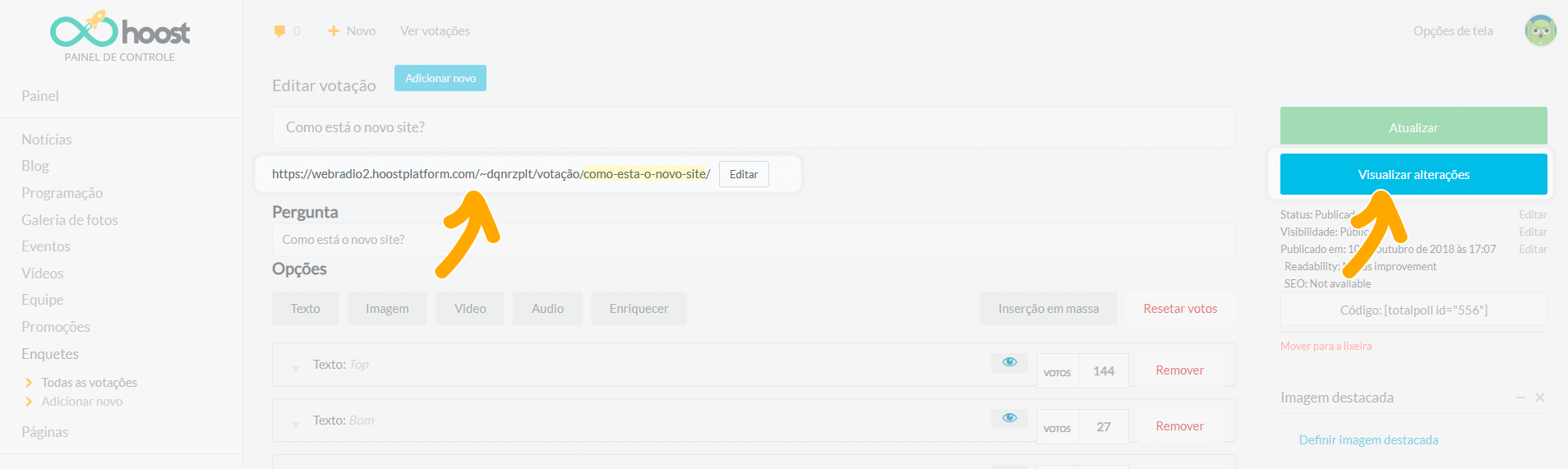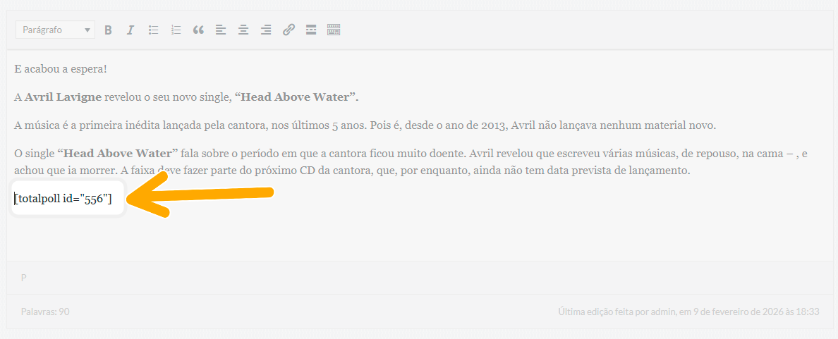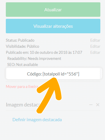 Também é possível exibir a enquete dentro de qualquer conteúdo do site, como: