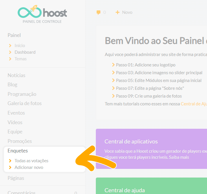 No menu lateral, clique em Enquetes.