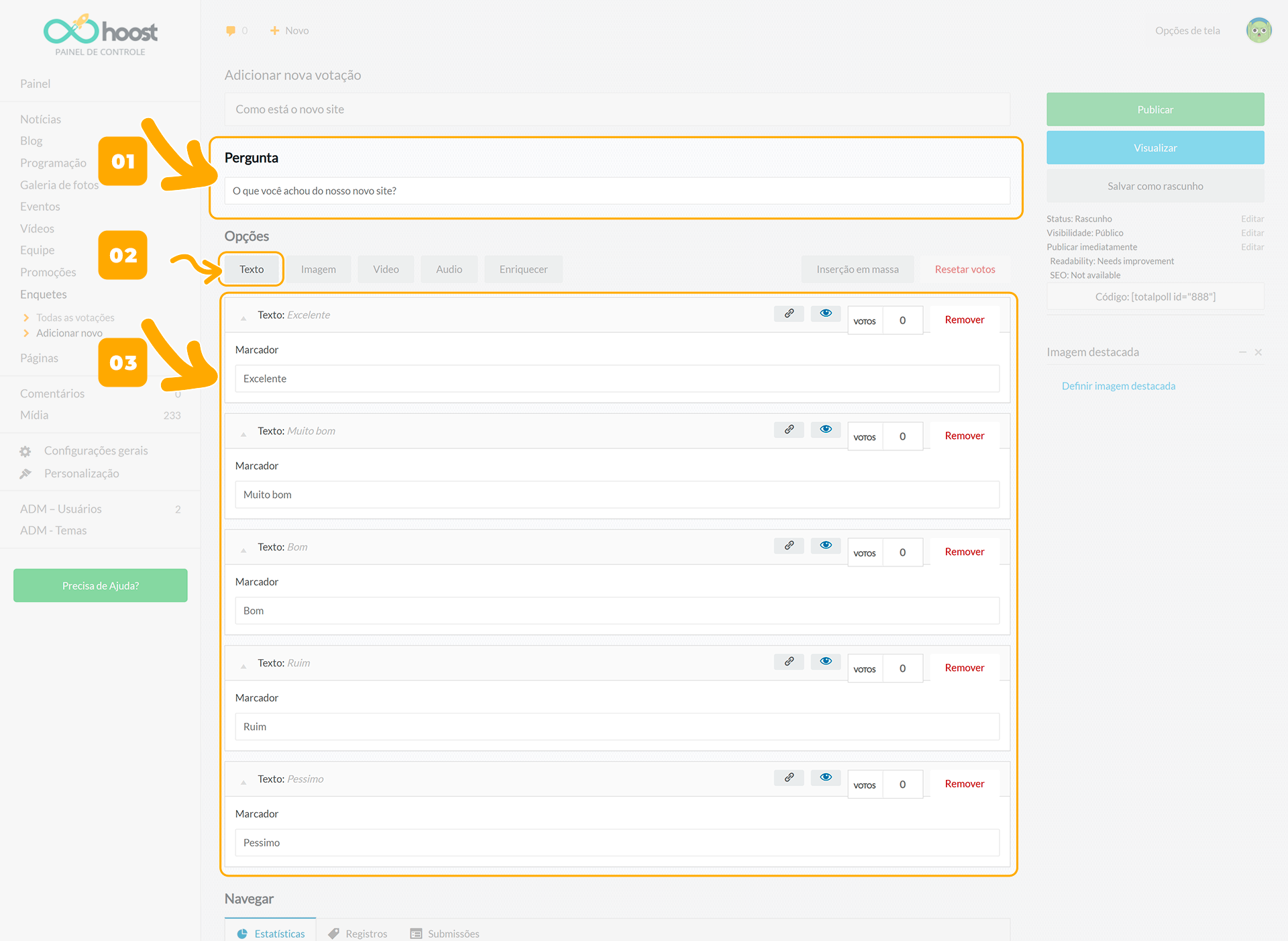 A enquete já poderá ser exibida em seu site.
