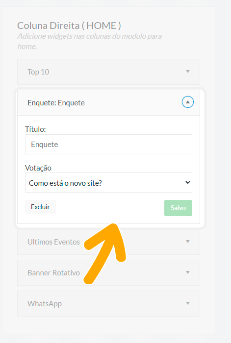 Selecione a enquete já criada e salve.