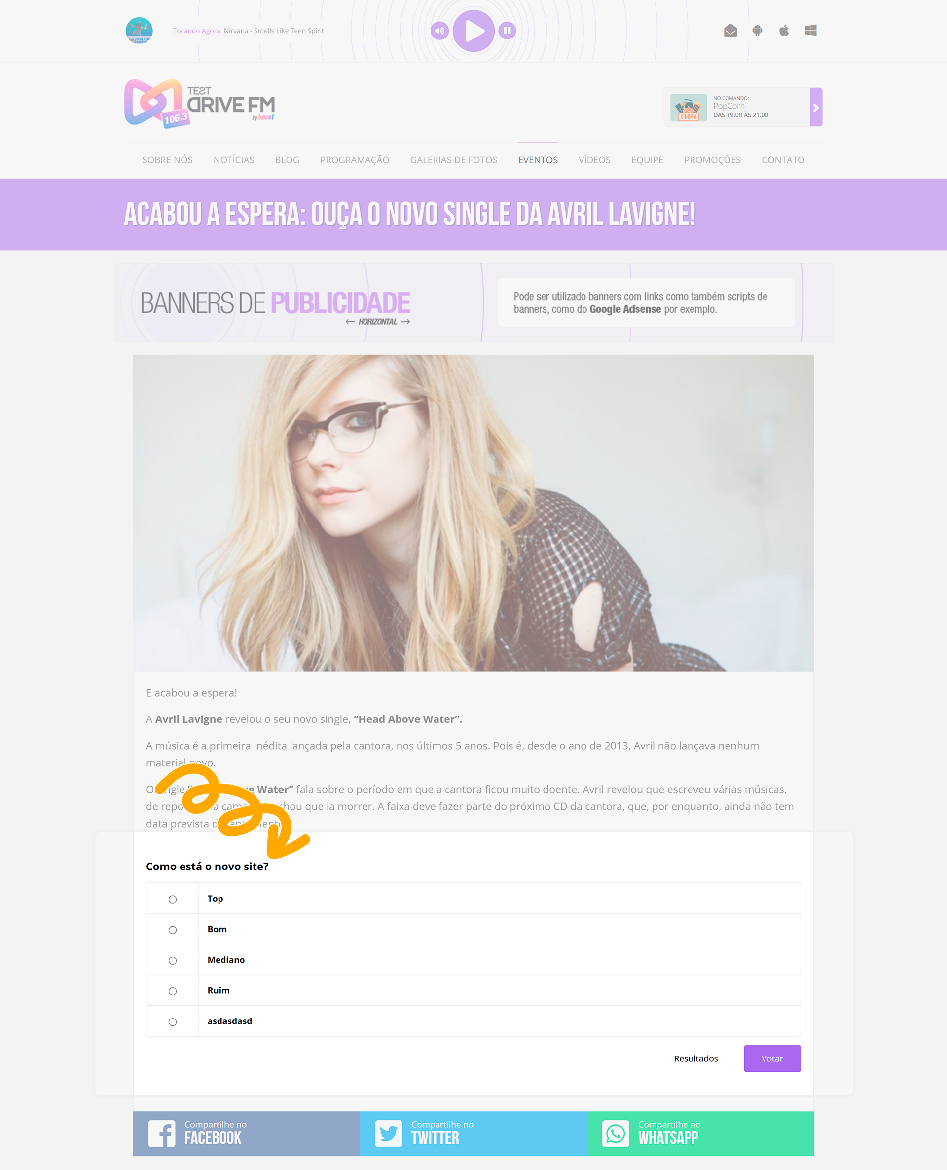 Atualize ou publique. Veja o resultado adicionando a enquete em uma noticia: