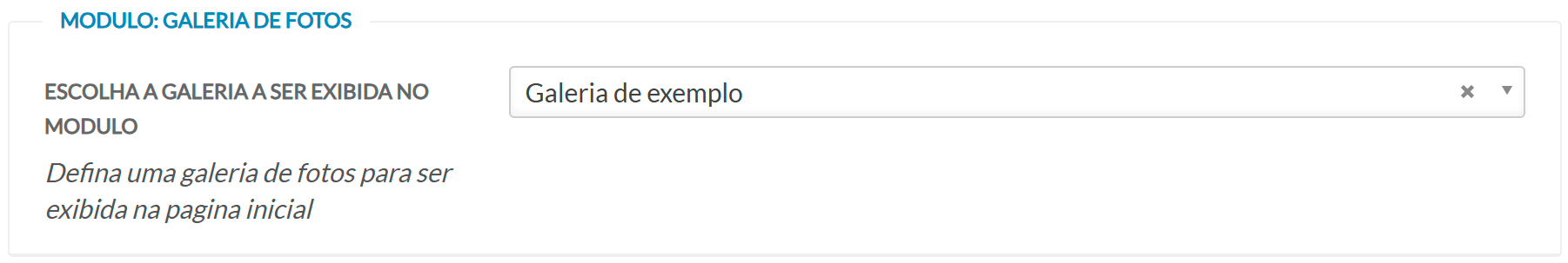Permite selecionar qual galeria será exibida na página inicial.