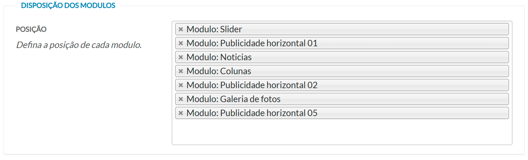 Permite definir a ordem em que os módulos aparecem na página inicial.