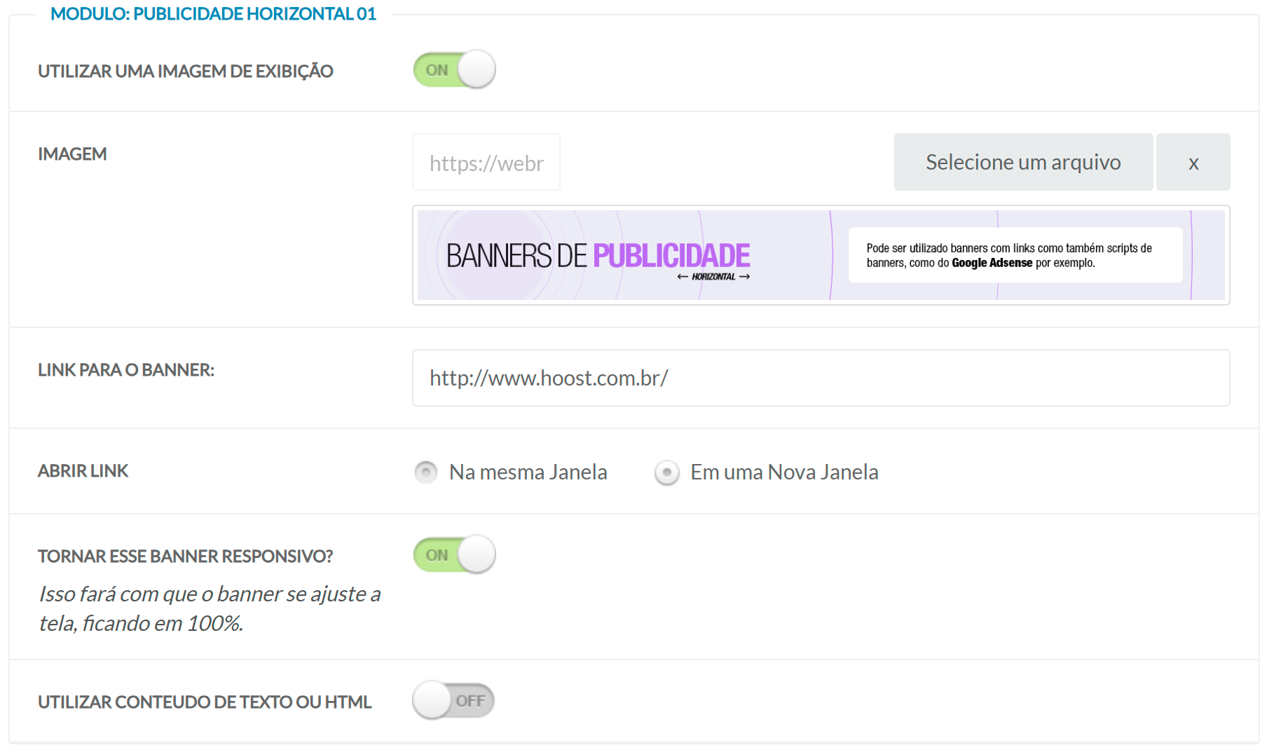 Módulos de publicidade horizontal
