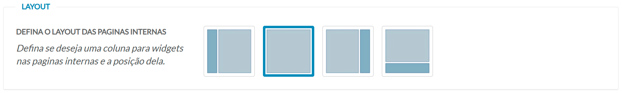 A seção Páginas internas permite definir o layout e a exibição de banners nas páginas internas do site, como notícias, blog, eventos, páginas institucionais e demais conteúdos.