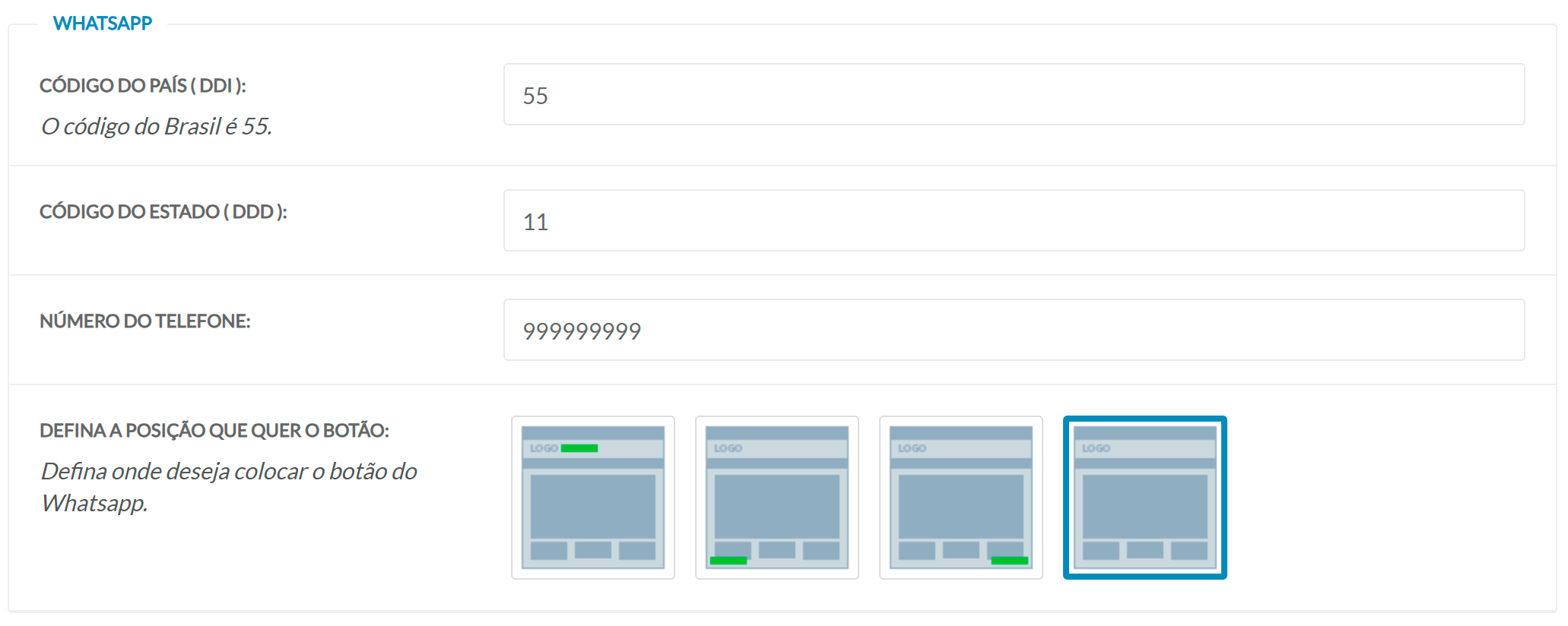 Define onde o botão do WhatsApp será exibido no site.