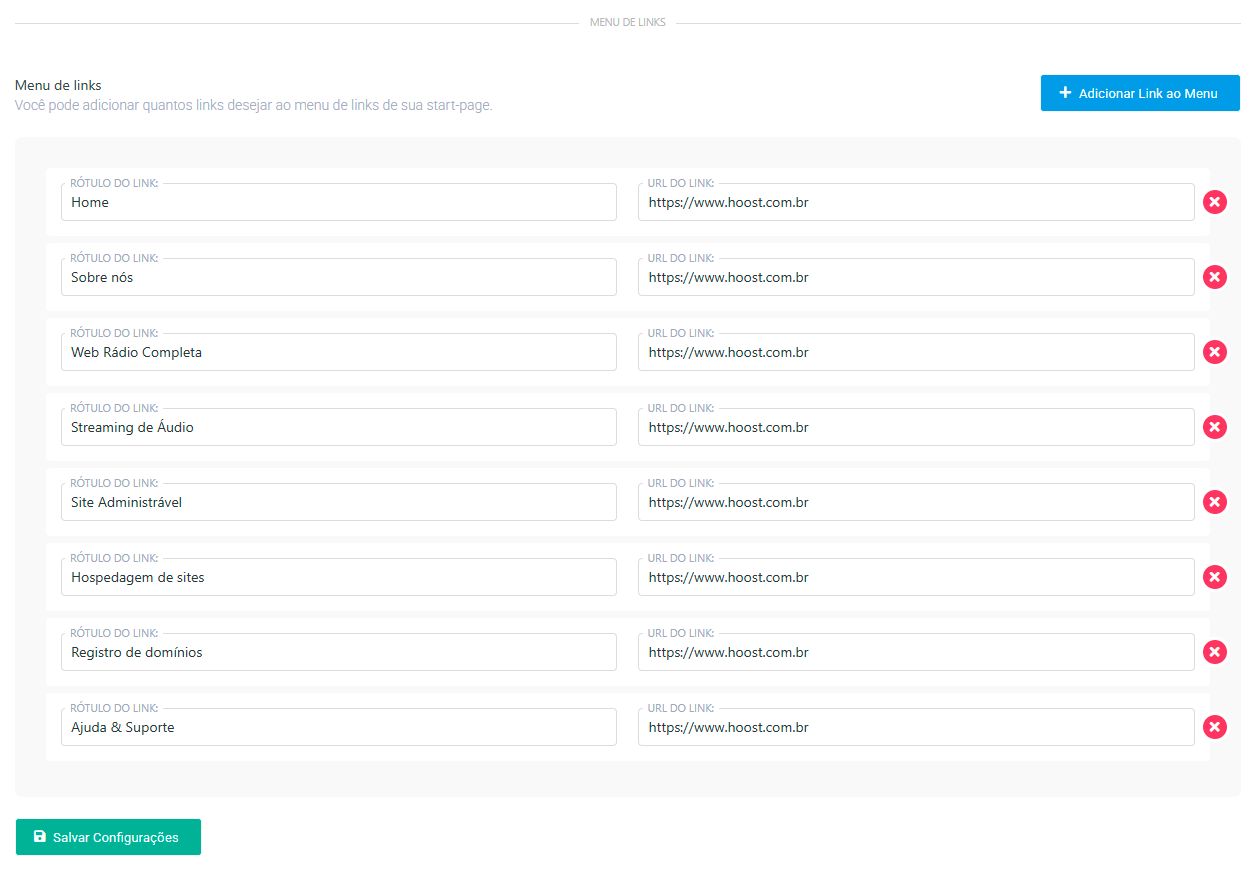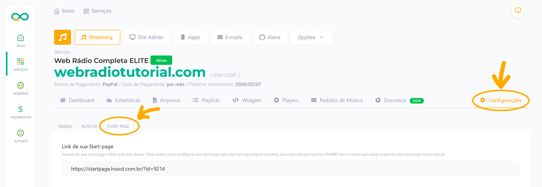 Logo no topo da página você encontrará o link da sua Start-Page, pronto para ser divulgado aos ouvintes.