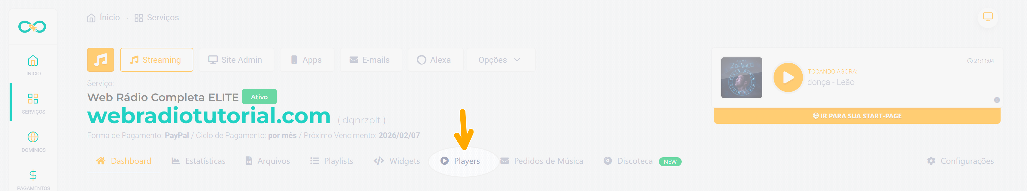 Selecione o menu Players.