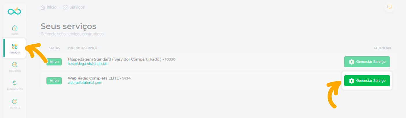 Vá em Serviços > Gerenciar serviço.