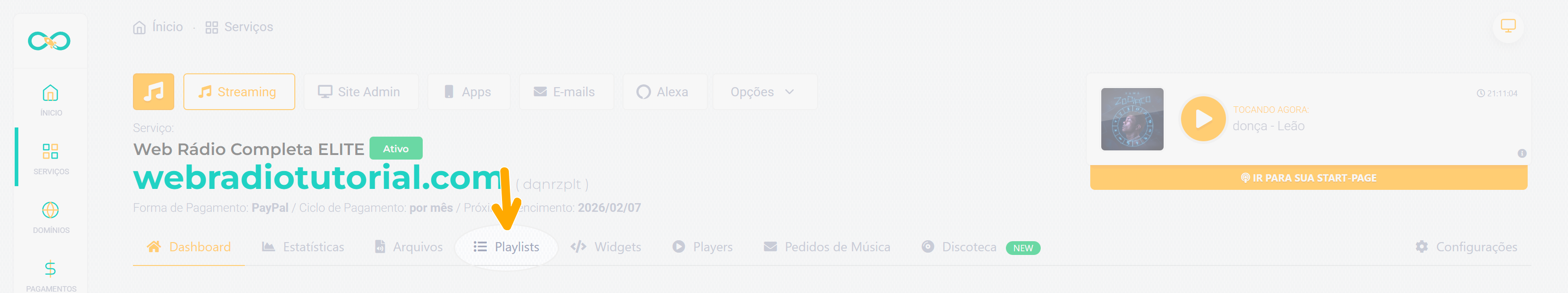Atenção: Essa opção no menu só será exibida se você tiver habilitado o Auto DJ nas configurações. Se você ainda não habilitou, clique aqui e saiba como