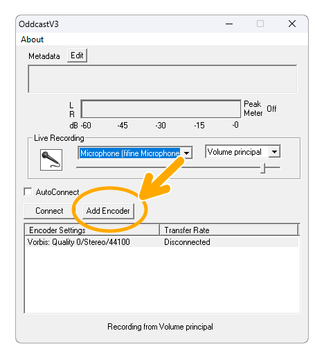 No ODDCast, clique em Add Encoder para criar uma nova transmissão.
